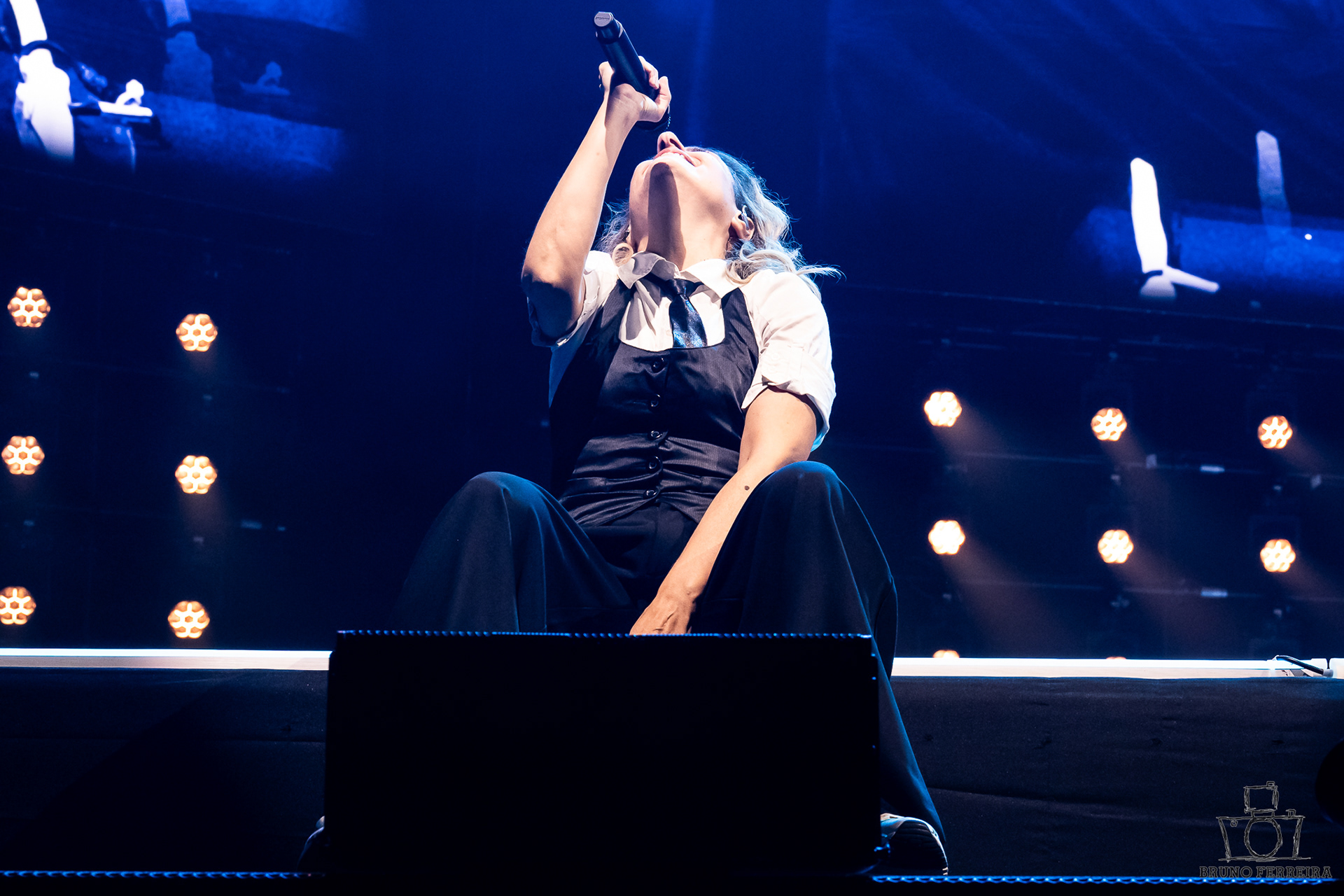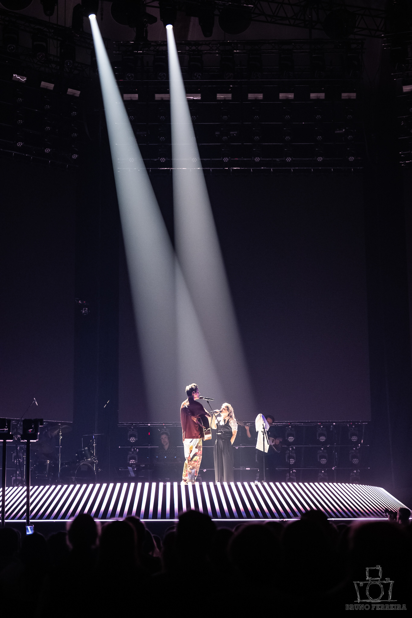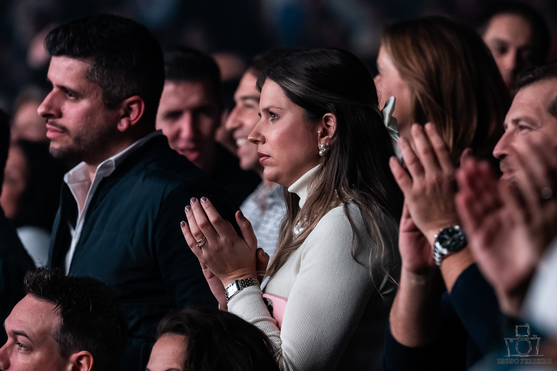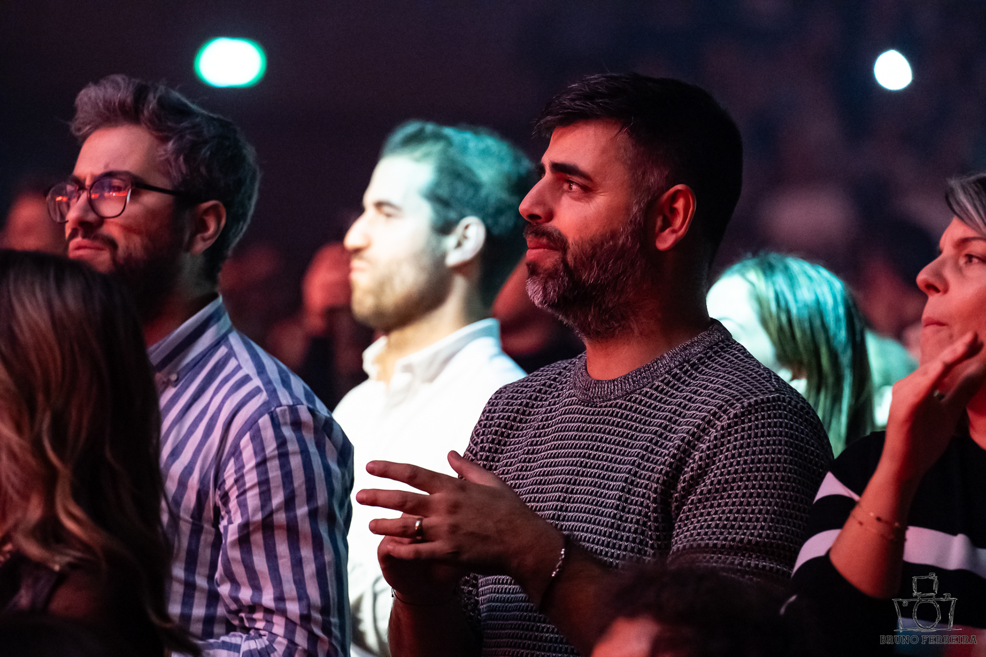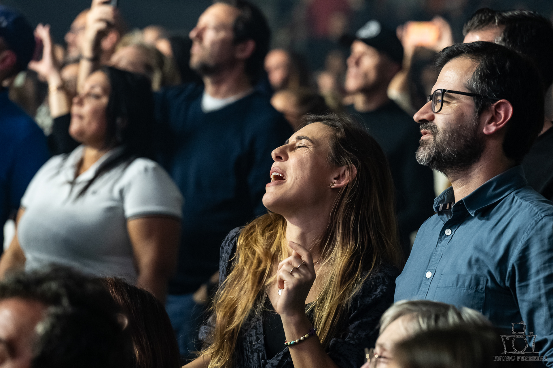Entre expressões contidas, abraços da plateia e a energia emocional que preenchia a sala, cada fotografia tenta capturar não apenas o espetáculo — mas a experiência de o sentir.